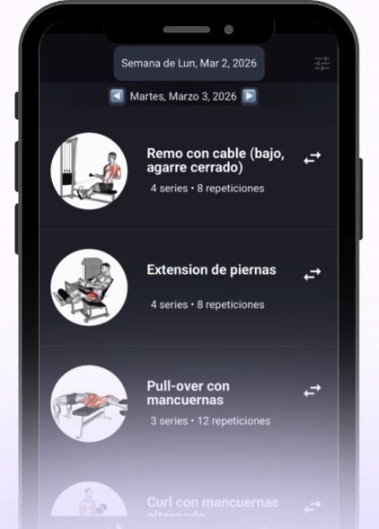 Usa mi app para ver tus rutinas semanales, acceder a videos y seguir tu progreso.