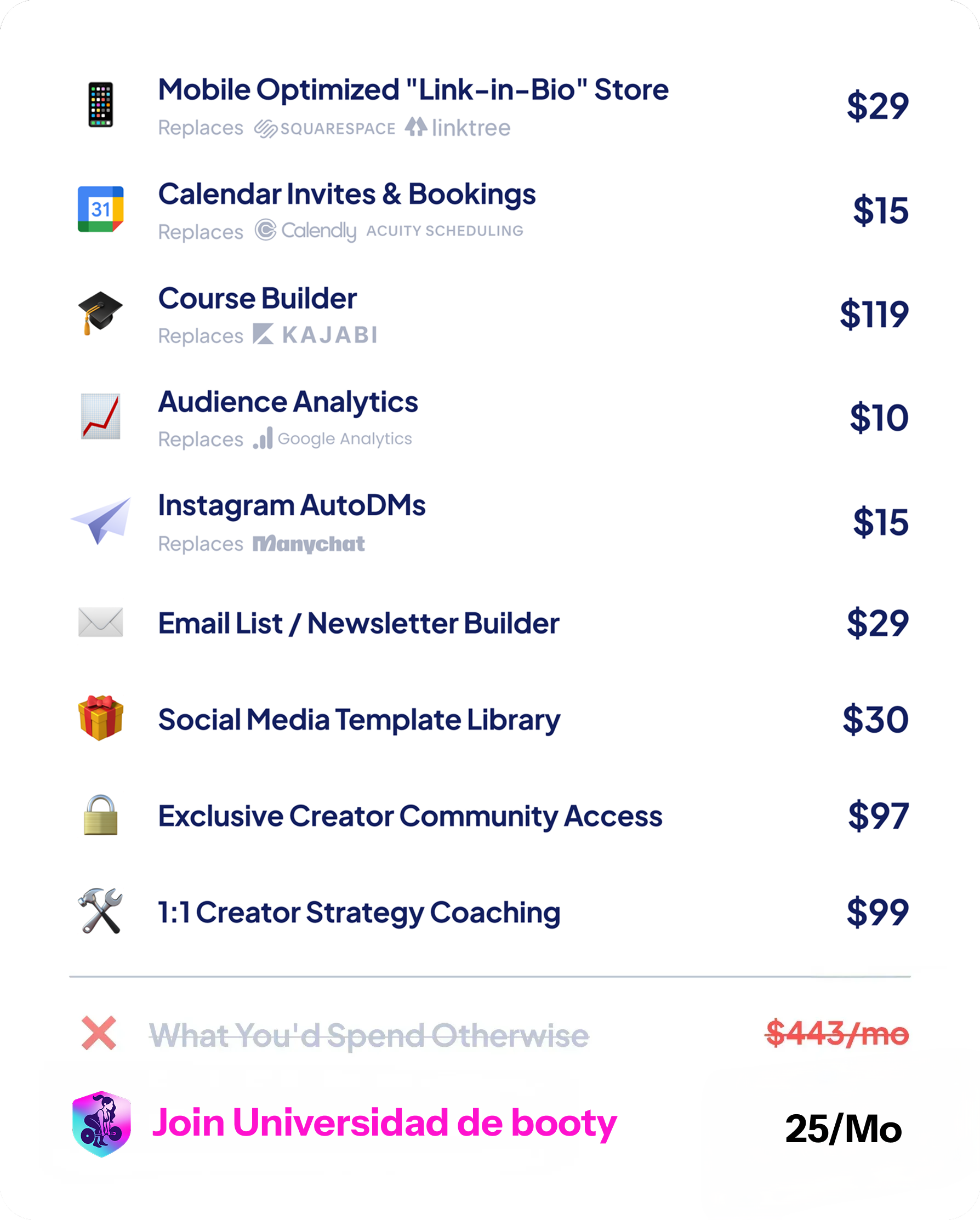 Tus seguidores no deberían tener fricciones al momento de comprar tus servicios.Universidad de Booty optimiza tu proceso de pago para maximizar tus tasas de conversión.